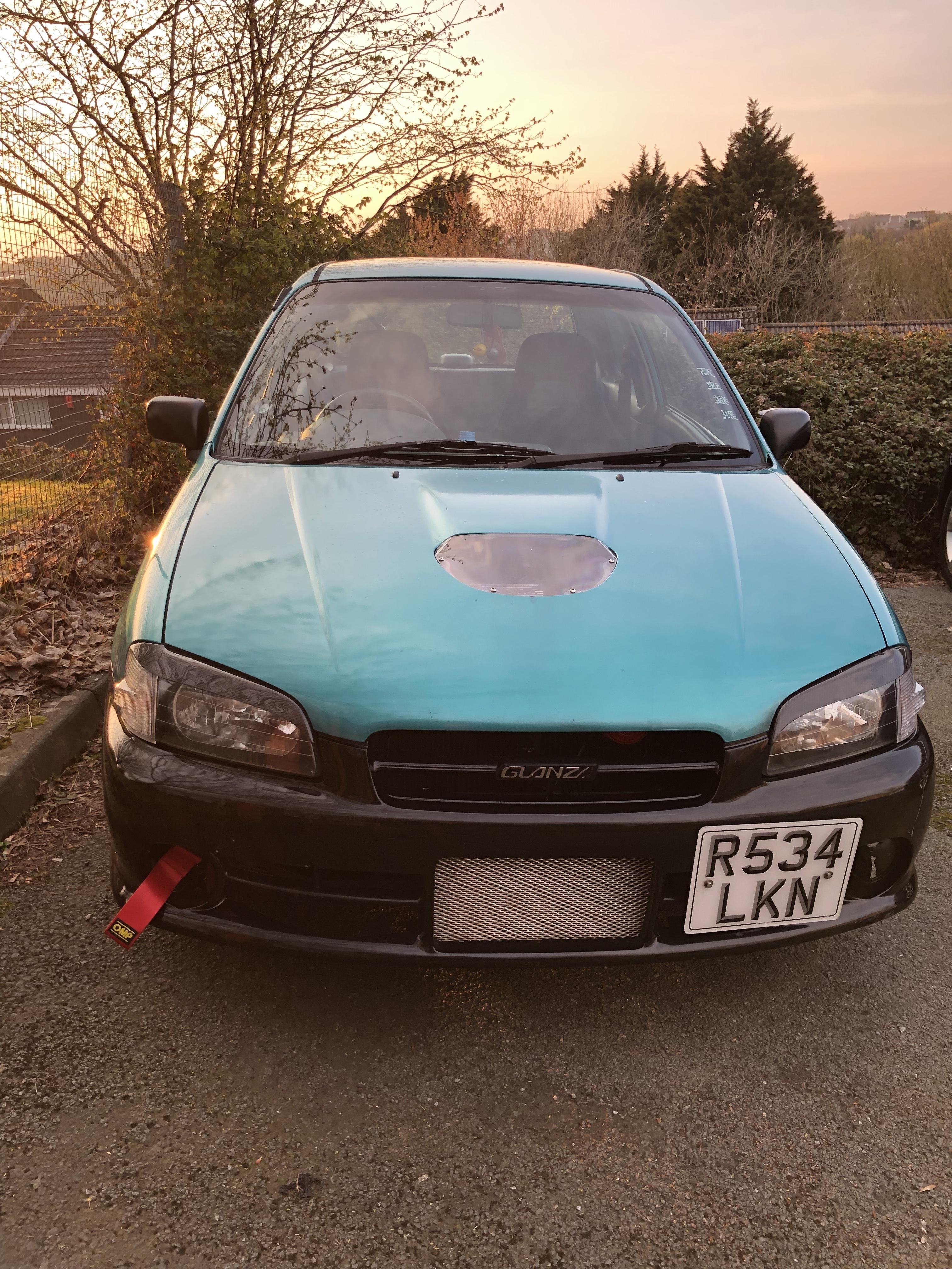 FWD Posted May 10, 2019 Posted May 10, 2019 (edited) I thought I’d share my journey with everyone of how I’m slowly transforming this green turd into a less turdy green machine.. I’ve had it over a year now and this is the progress so far. I bought the car February 2018 and as you can see it’s hat it’s fair few encounters with “that came out of nowhere’s” scrapes and garnished with some questionable stickers. First thing I did was to take it home remove some of the stickers and take it to the jetwash, and give it a full clean. I then took a rattle can to the sportif hubcap covers which looked quite nice as at this point I couldn’t afford alloys that did me for a while until I fully discovered the Halfords air filter section and as the caption said, the engine bay definitely needed a good clean. But I didn’t really get round to doing it for a couple months. i then found a cheap eBay japcannon of an exhaust and got in touch with the local exhaust company who made a custom cat back with it. (I know this if anything would probably crap on the performance but at the time I wanted a loud car that I could rev because we all know loud exhausts is what really get the ladies interested . After this I decided to browse eBay for some bargain tint foil and found a reflective turquoise which I think looks good except for the face I put it on so it looks like crap, (it will be re done black professionally eventually). Next was the clear indicator lenses and Glanza rear lights which both fitted very easily and were a straight swap, same with the rear bumper. I did also buy a spoiler and a jap spec boot with spoiler so I did a mock up to see what it looks like and dammmn it looks good. Finally did that engine bay clean along with a fresh full service and filter change. I managed to source a bonnet (in the wrong colour) some cloudy headlights, and a set of GT seats, and a black bumper. I swapped the bonnet over for the Glanza one alongside the freshly polished and refurbed lights, and bumper all were a straight fit except the bumper and seats which needed the grill so cable ties will have to do for now, and the seats have a font locating pin which had to be sawed off. The next bit was to finally get a set of alloys, luckily I found a very good condition set of carbon hydro dipped enkei hollowspokes off of a VR MX5 which after a fresh set of boots were almost a straight fit except I needed deeper wheel nuts, eventually though they were on! Since it’s a non turbo and I have no top mount IC I bought the clear bonnet scoop cover for those rainy days and it looks mint, but it’d look better with a turbo under the bonnet. Only a couple days ago put in a fresh alternator (12v 70A) as the lights were having issues and an unbearable whining underneath the hood and also resprayed the Glanza spoiler black with pearlescent flecks. That’s it so far I will add more progress when it arrives. To do list: - FN2 civic recaros on custom rails. - Full turbo conversion. -civic half rad and new pipes all round. -Looking for a duck tail and a larger spoiler. (EDIT 4th Nov 19) new Subaru STI 06? I think buckets are now in and after unfortunately decimating my alloys via an unpleasant meeting with a curb attempting a semi decent drift in pouring rain 😂 I have got some sweet new chrome lipped ones, and also some fogs too, hopefully many more things to do, new pics are in the feed. Edited November 4, 2019 by FWD Updating some pics! Quote